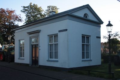 Gewit laag huis met rechte kroonlijst. Boerenhoeve type