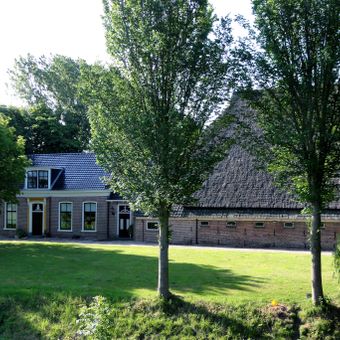 Kop-hals-rompboerderij met in het midden onderkelderd voorhuis met gevelsteen en roedenverdeling in de vensters