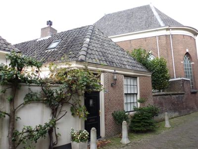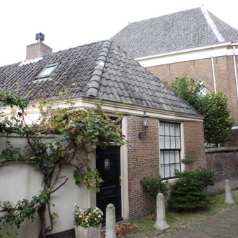 Woonhuis met lage gevel uitgevoerd in baksteen. Maakt deel uit van het synagoge-complex, house in Amersfoort, Netherlands