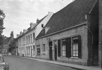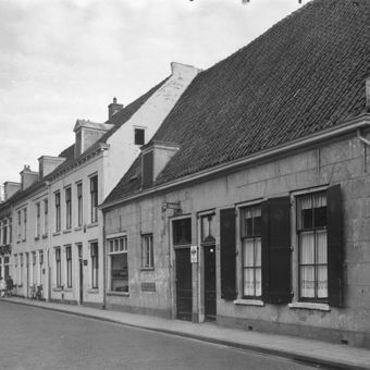 Woonhuis, hoek Langestraat. Gepleisterde gevel, hijskapel en luiken