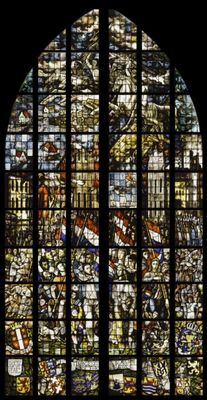 Liberation window, war monument in the Janskerk, Gouda, Netherlands