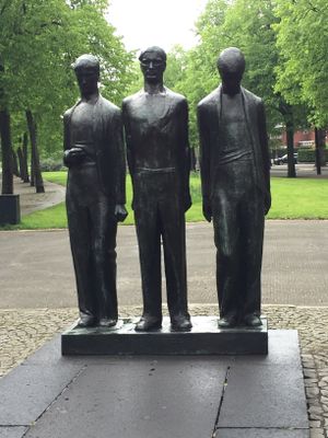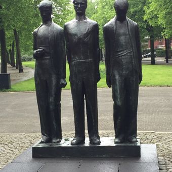 El monumento de bronce y basalto presenta tres figuras de tamaño natural que expresan diferentes estados emocionales en la intersección de Apollolaan.
