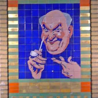 De Goudse Pijproker, tile tableau by Willem van Norden in Gouda, Netherlands