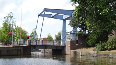 Breed koopmanshuis van parterre en verdieping met brede middenrisaliet, waarin hardstenen poortomlijsting met gebeeldhouwd opschrift "Noord-Holland" en jaartal