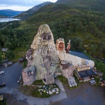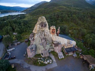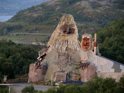 El Trol de Senja alcanza una altura de 17.96 metros, pesa 125.000 kilogramos y alberga un parque de aventuras de dos pisos en su estructura.