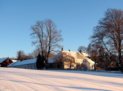 La casa señorial se encuentra en terrenos elevados cerca de Porsgrunn, presentando elementos arquitectónicos noruegos tradicionales y un jardín barroco establecido en 1702.