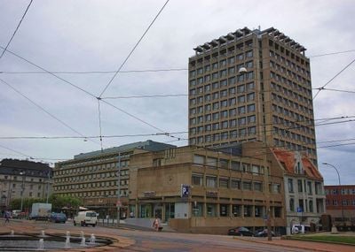 Construido en 1964 en el antiguo emplazamiento del Det engelske kvarter, el edificio se diseñó para albergar la Asociación de Industria y el Consejo de Exportación.