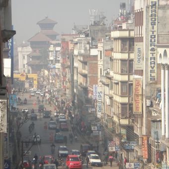Nueva carretera de Katmandú, Vía comercial en el centro de Katmandú, Nepal.