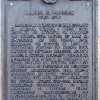 Manuel S. Enverga historical marker, NHI historical marker for Manuel Enverga in Mauban