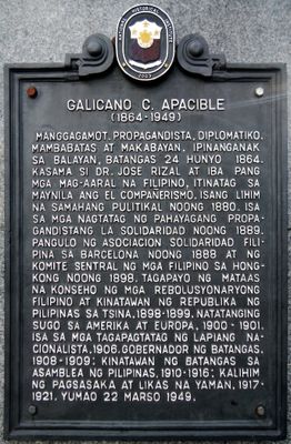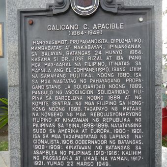 Galicano C. Apacible historical marker, NHI historical marker for Galicano Apacible