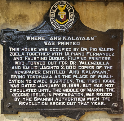Where “Ang Kalayaan” was Printed historical marker, NHCP historical marker for the printing site of Kalayaan