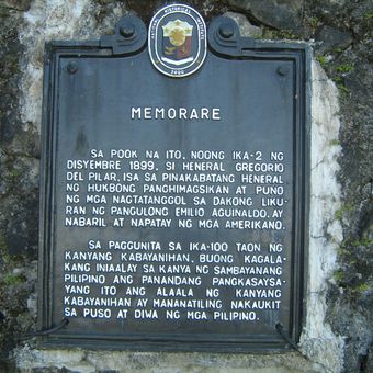 Memorare historical marker, NHCP historical marker for the death place of Gregorio del Pilar