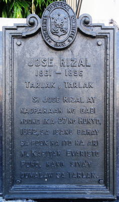 Jose Rizal historical marker, PHC historical marker for José Rizal in Tarlac City
