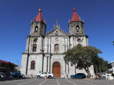 La Iglesia Parroquial de Santa Ana presenta una fachada de piedra coralina blanca con dos campanarios rojos puntiagudos que albergan treinta campanas.