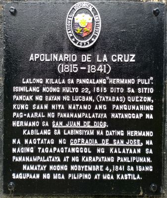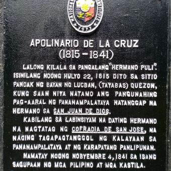 Apolinario de la Cruz historical marker, NHCP historical marker for Hermano Pule in Lucban