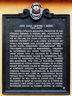 Jose Abad Santos y Barce historical marker, NHCP historical marker for José Abad Santos in Manila