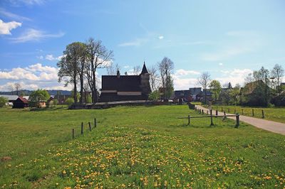 El pueblo mantiene la arquitectura rural tradicional polaca mediante sus edificaciones de madera, especialmente visible en la iglesia declarada Patrimonio Mundial.