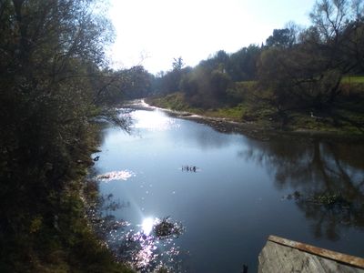 Los restos del castillo del siglo XIV construido por J. Ostroróg permanecen en una isla del río Bug, con muros esquineros y sótanos.