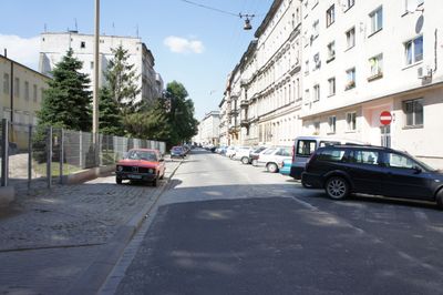 La antigua ubicación de la sinagoga ahora alberga un jardín de infantes, edificios residenciales y un estacionamiento universitario cerca de ulica Łąkowa.