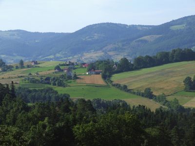 Babia Góra es una cima de 727 metros en la cordillera Beskid Wyspowy, accesible a través de tres senderos de senderismo distintos que atraviesan laderas boscosas y pasos rocosos. Cada ruta ofrece diferentes perspectivas del terreno circundante y cambios de vegetación en el camino.