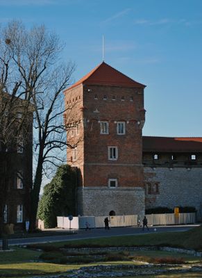 La Torre de los Ladrones de Wawel se alza como una fortificación de piedra dentro del complejo del castillo, con elementos arquitectónicos góticos y características defensivas.