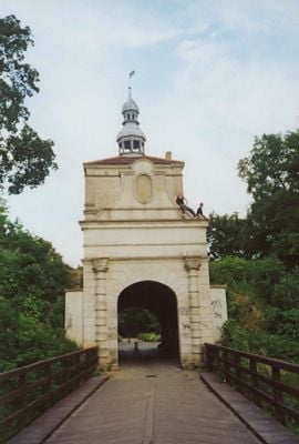 La estructura defensiva incorpora gruesos muros de piedra, torres y fortificaciones ubicadas estratégicamente en la frontera occidental polaca.