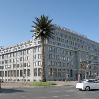 Bank Gospodarstwa Krajowego building in Warsaw, Edificio bancario modernista en Varsovia, Polonia.