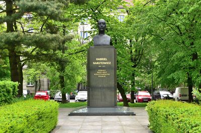 Gabriel Narutowicz Monument in Warsaw, Busto memorial de bronce en Plaza Narutowicza en Varsovia, Polonia