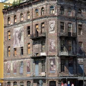 Entre 2008 y 2014, las ventanas y fachada del edificio mostraron fotografías de judíos polacos, parte de la colección de la Fundación Shalom.