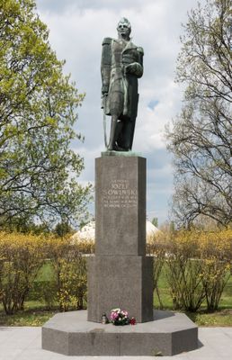 La estatua de bronce representa al General Józef Sowiński en posición de firmes, ubicada dentro del parque de 8,3 hectáreas que lleva su nombre.