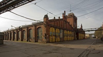 Old tram sheds at depot no. 5, Pools monument in Wrocław