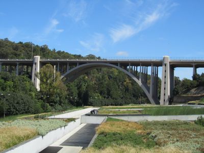 El Viaducto Duarte Pacheco atraviesa el Valle de Alcántara, conectando Serra de Monsanto con Campolide mediante una estructura de 471 metros de longitud.