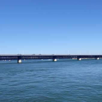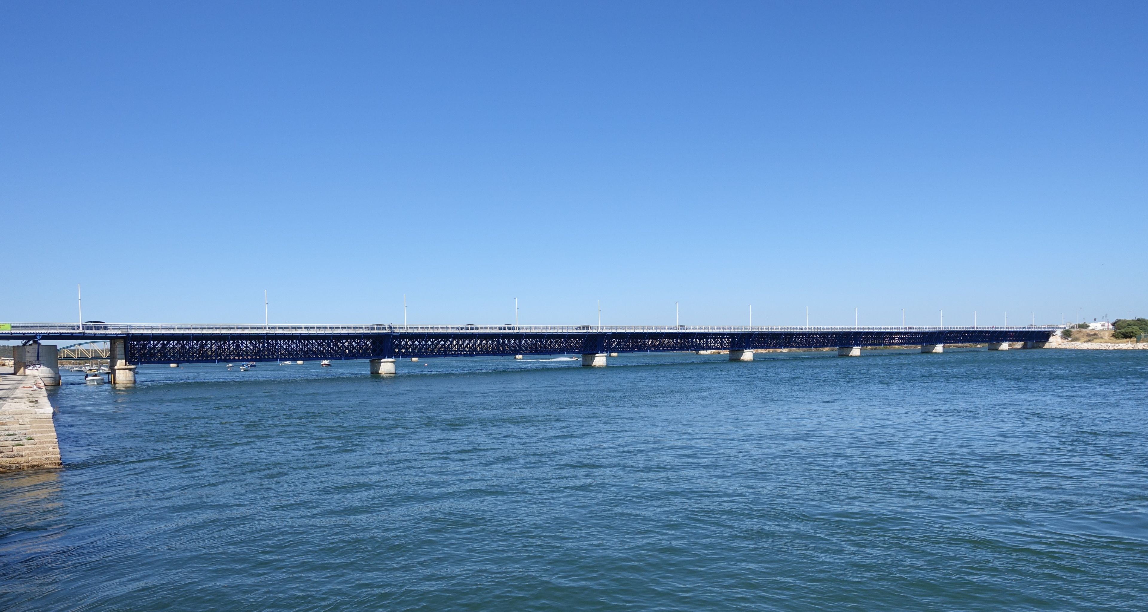El puente de estructura metálica cruza el río Arade con una extensión de 300 metros y una anchura de 6 metros.