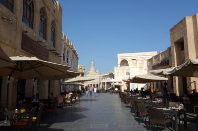 Souq Waqif es un mercado tradicional en Doha, Catar, con edificios de barro y callejones estrechos que se extienden por varios bloques interconectados. Los puestos y tiendas venden especias, textiles, joyas y artesanías bajo pasajes cubiertos y patios abiertos.