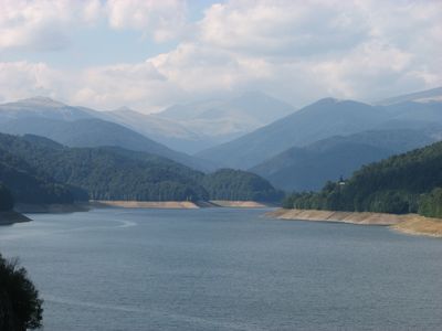 La presa Vidraru, construida sobre el río Argeș, alcanza 166 metros de altura y genera energía hidroeléctrica mientras crea un embalse de 465 millones de metros cúbicos.