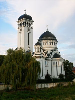 La Iglesia de la Santa Trinidad se encuentra en la orilla norte del río Târnava Mare, con un diseño que sigue principios arquitectónicos neobizantinos.