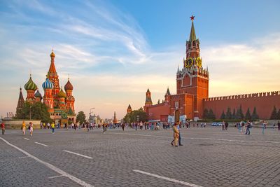 La arquitectura de la ciudad combina estructuras medievales, edificios soviéticos monumentales y rascacielos modernos, destacando el Kremlin y la Catedral de San Basilio.