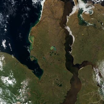 Yamal es una península del noroeste de Siberia que se extiende entre el mar de Kara y el golfo de Ob, cubierta por tundra plana. La superficie consiste principalmente en permafrost con incontables lagos y pantanos dispersos por el territorio durante el breve verano.