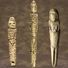 La mitad de las figurillas muestran patrones tallados que sugieren ropa o piel, mientras sus bases cónicas indican que fueron diseñadas para mantenerse erguidas.