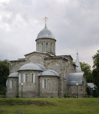 La Catedral de la Sagrada Ascensión es un templo ortodoxo en Alagir con estructuras abovedadas tradicionales y una fachada de piedra blanca con detalles ornamentales. El edificio muestra elementos arquitectónicos típicos de la tradición ortodoxa.