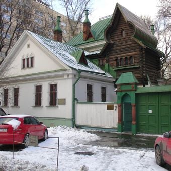 La mansión de madera, construida en 1894 según los diseños de Vasnetsov, funcionó como residencia del pintor hasta su fallecimiento en 1926.