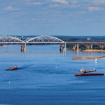 Este puente ferroviario sobre el Volga conecta Nizhny Novgorod con Bor y está construido de acero y hormigón. La estructura se extiende aproximadamente 21,6 kilómetros y lleva múltiples vías férreas que transportan miles de pasajeros y carga diariamente.