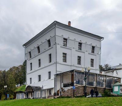 La torre Volzhskaya es una construcción de piedra con base cuadrada y muros de ladrillo grueso ubicada cerca de la orilla del Volga. La estructura evidencia su solidez mediante la mampostería resistente, y actualmente alberga un café en la planta baja para los visitantes.