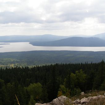 El lago Zyuratkul es un embalse de montana en los Urales Meridionales situado a unos 724 metros de altura en la oblast de Chelyabinsk. El cuerpo de agua se extiende aproximadamente 10 kilometros de largo y 2 kilometros de ancho, rodeado de tierras altas boscosas.