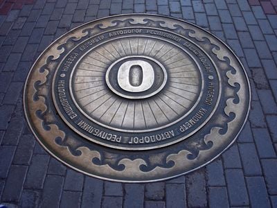 Kilometer zero marker for the Bashkortostan Republic highway, Marcador conmemorativo en Ufa, Rusia