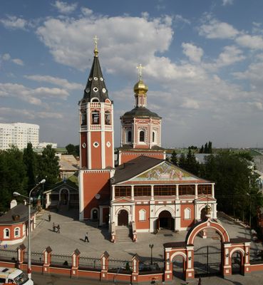 La Catedral de la Trinidad, construida en madera, representa la principal iglesia ortodoxa de Saratov con elementos arquitectónicos del barroco moscovita.