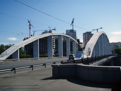 El Puente Khoroshyovsky se extiende 187,4 metros sobre el río Moscova con una anchura de 25 metros, conectando diferentes barrios del paisaje urbano moscovita.