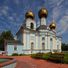 La Iglesia de la Natividad de la Theotokos presenta elementos arquitectónicos rusos tradicionales con una cúpula central y disposición simétrica.