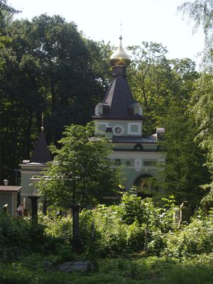 Saint Xenia Chapel in Saint Petersburg, Capilla ortodoxa en el Cementerio Smolensk, San Petersburgo, Rusia.