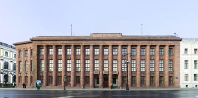 El edificio representa la influencia arquitectónica alemana de principios del siglo XX en Rusia mediante su diseño monumental y proporciones clásicas.